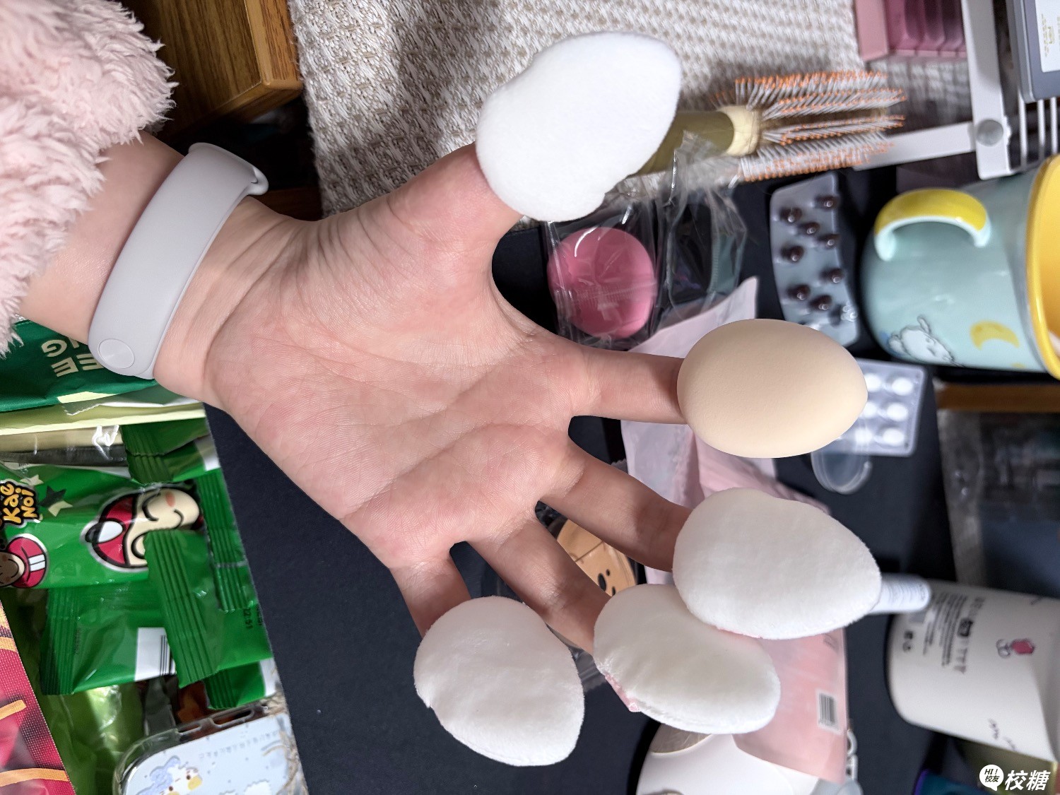 每个手指都有粉扑