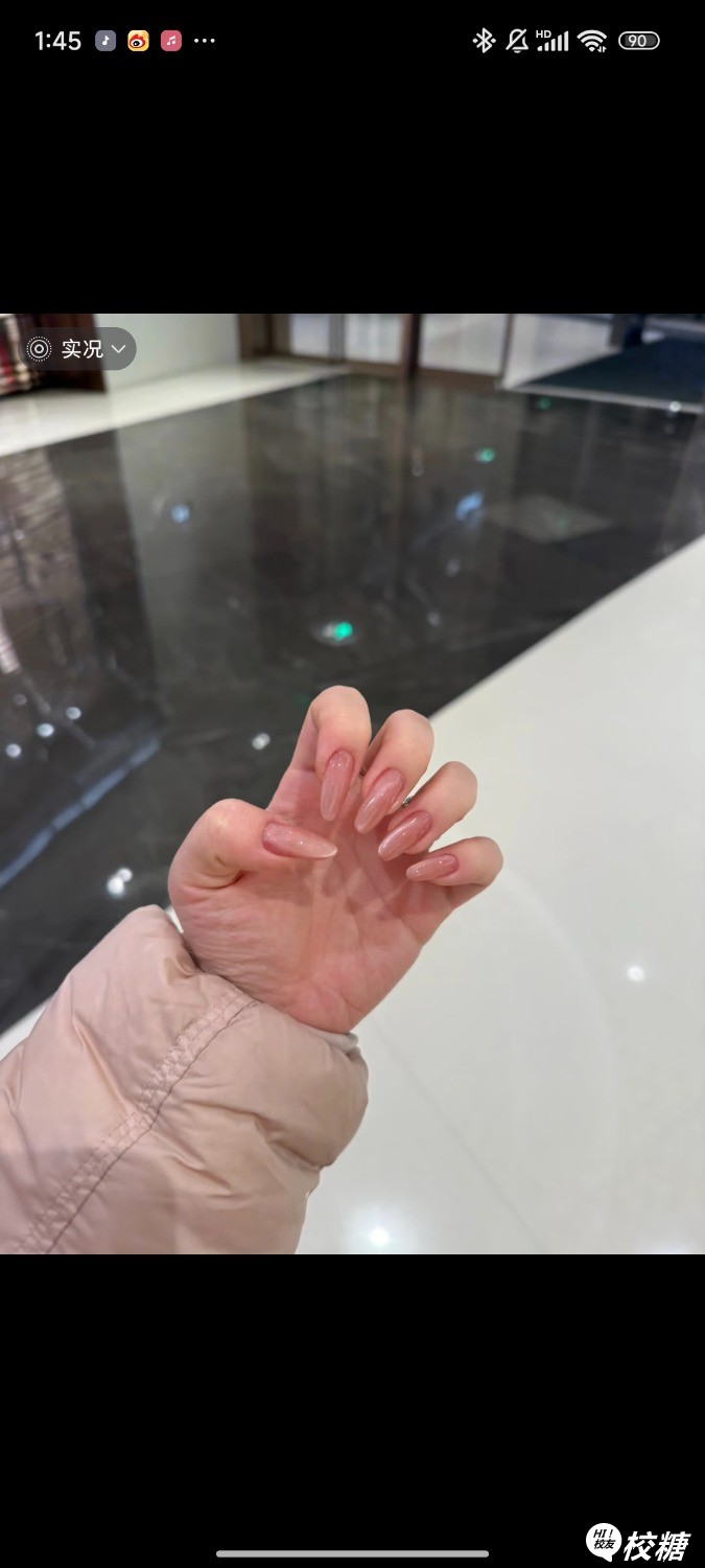 玻璃猫眼款美甲,偏圆甲